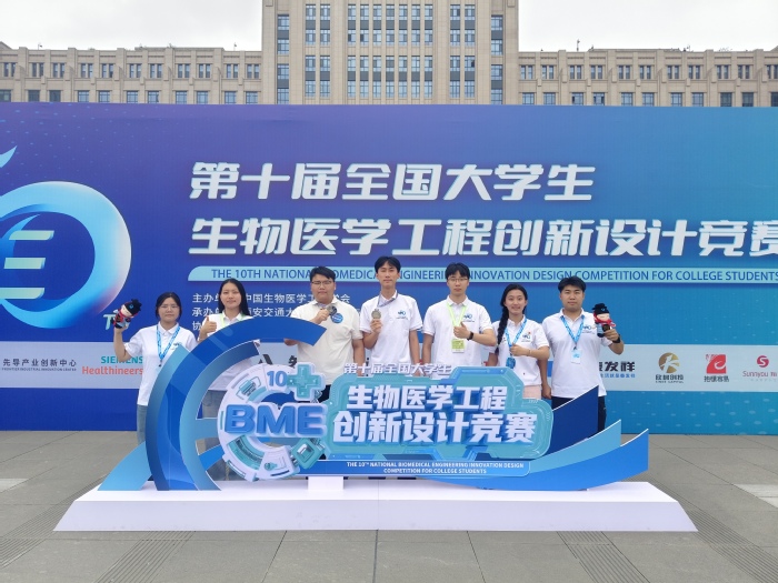 7月20日至22日,由中国生物医学工程学会主办、西安交通大学承办的第十届全国大学生生物医学工程创新设计竞赛决赛在中国西部科技创新港举办。该竞赛全程采用双向匿名评审方式,经过激烈角逐,我校晋级本次全国决赛的两个创新项目再创佳绩,由智能医学工程学院畅豫霄、吕世豪老师指导的数据科学与大数据技术专业刘根团队“靶向未来—基于多通道特征融合的药物靶标结合亲和力预测模型”项目,吴贝贝老师指导的临床医学专业王天赐团队睿瞳连感—基于多模态感知与语音交互的智能导盲系统项目,均荣获国家级二等奖,充分展现了我校新医科创新人才的培养实力。