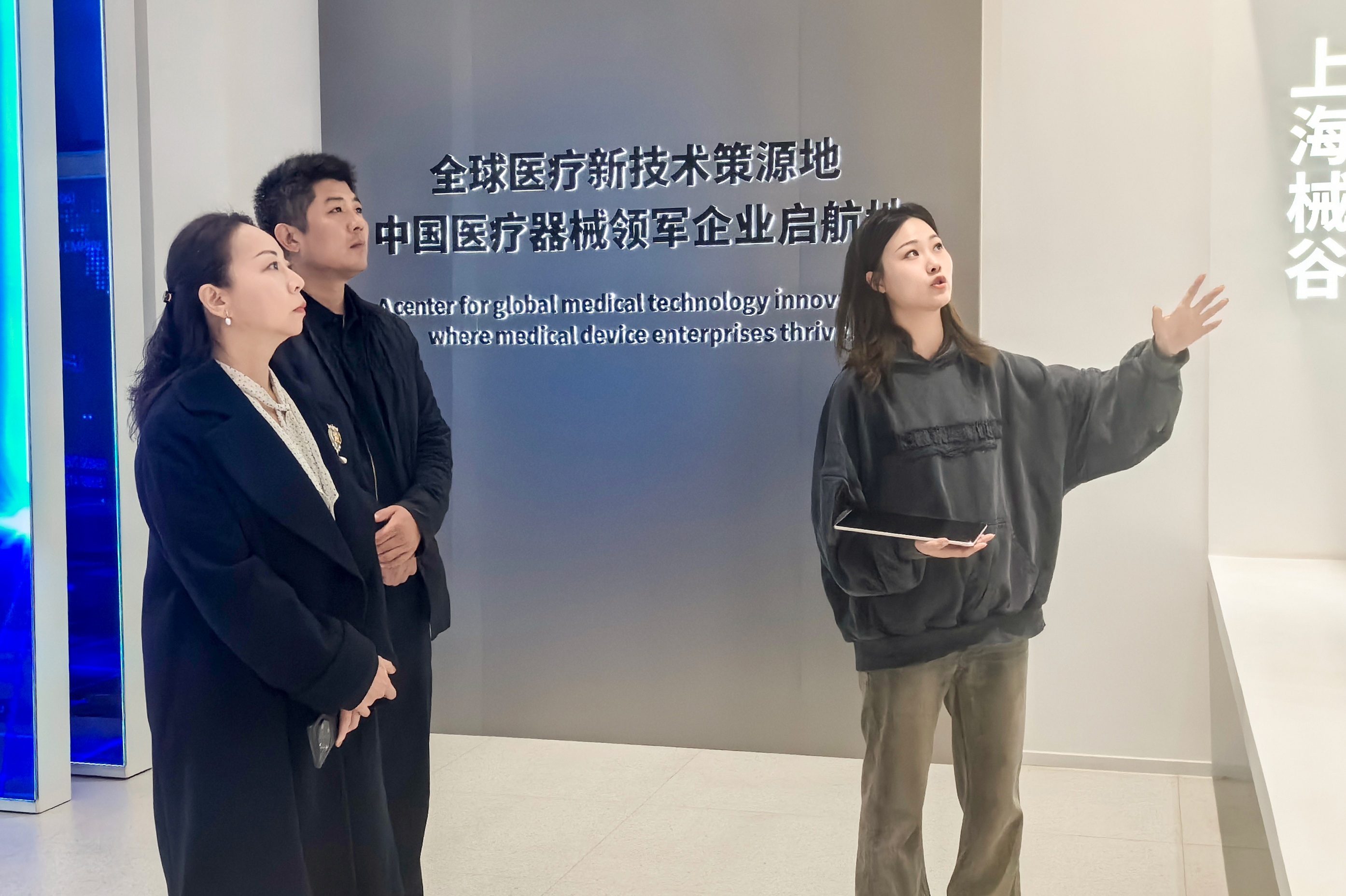 随后,李琼一行赴被誉为中国医疗器械产业新高地的“上海械谷”参观调研。她系统了解了“械谷”以“医工融合”为核心驱动的发展模式与建设成效。作为国家级产业创新集聚区,“上海械谷”汇聚了以上海交通大学医学院附属瑞金医院创新中心为代表的高水平临床科研资源,以及山丘可见(上海)生物科技有限公司等一批高新技术企业,致力于推动智能医疗器械、生物技术与先进制造技术的跨界融合与成果转化,构建了从临床需求提出、技术协同攻关到产业孵化落地的完整创新生态。