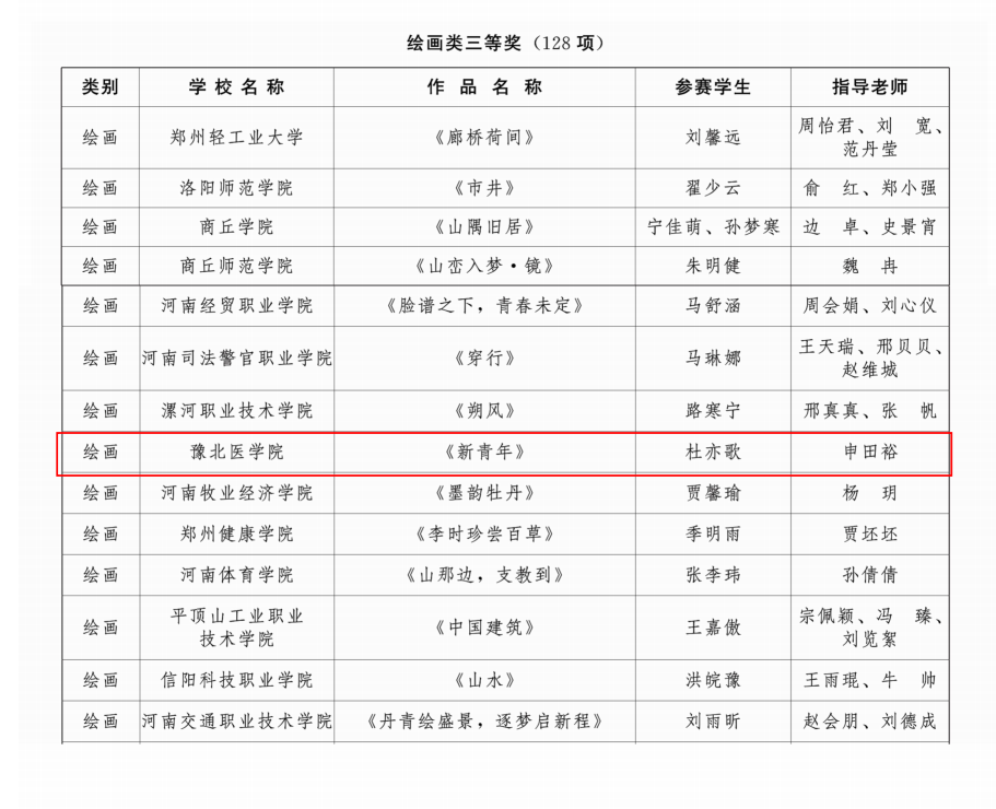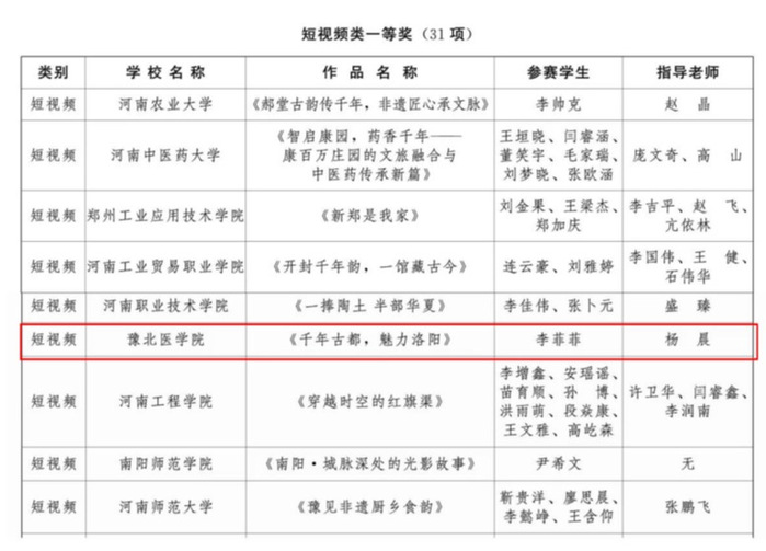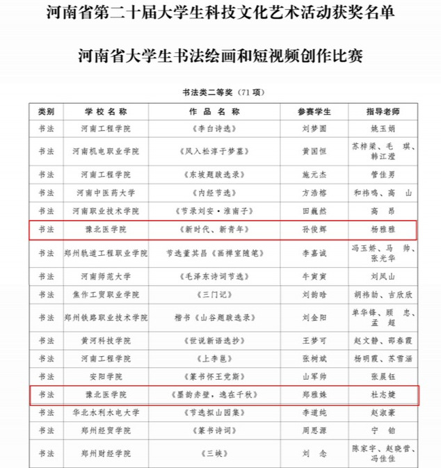 近日,由中共河南省委宣传部、共青团河南省委、河南省教育厅、河南省文化和旅游厅、河南省科学技术厅、河南省体育局及河南省学生联合会主办的河南省第二十届大学生科技文化艺术节获奖结果正式公布。我校学子凭借出色表现,共获得一等奖1项、二等奖2项、三等奖3项,充分展现了我校在“五育并举”人才培养体系下的育人成效和我校学子全面发展的综合素养。