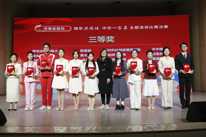 11月14日,由中共河南省委教育工委、河南省教育厅、河南省民族宗教委主办的河南省高校大学生“铸牢共同体 中华一家亲”主题演讲比赛决赛顺利举行,我校精诚书院陈卓同学荣获河南省三等奖。